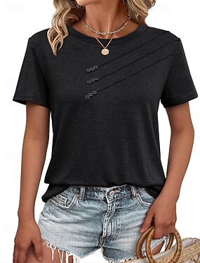 Per donna Maglietta Top estivi Patchwork Bottoni Tinta unica Semplice Elegante Vintage Moda Manica Corta Girocollo Top Regolari Quotidiano Uscire Weekend Nero Bianco Vino Cachi Estate Primavera