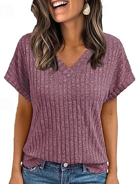 Per donna Top a maglia a coste Maglietta Orlo asimmetrico Elegante Casual Manica Corta Manica a pipistrello Scollo a V Top lunghi Quotidiano Uscire Blu Nero Verde militare Rosa polverosa Albicocca