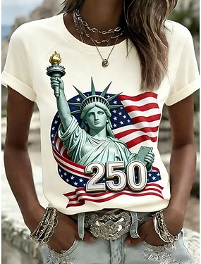 Giorno dell'Indipendenza Americana Per donna Maglietta Stampato Grafico Bandiera Elegante Classico Casual Manica Corta Girocollo Top Regolari Quotidiano Bianco Estate Primavera