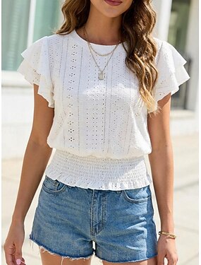 Per donna Taglia grande Top traforato Maglietta Elastico in vita Elegante Manica Corta Manica a Balze Girocollo Top Regolari Uscire Bianco Rosa Azzurro Estate Primavera