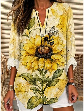 Per donna Camicia Camicia casual Camicia da Spiaggia Blusa Stampato Floreale Grafico Bohemien Elegante Casual Manica Corta Scollo a V Top Regolari Quotidiano Ferie Uscire Blu Bianco Giallo Arancione