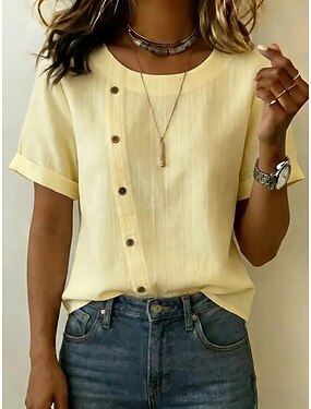 Per donna Maglietta Bottoni Elegante Classico Casual Manica Corta Girocollo Top Regolari Casuale Bianco Giallo Rosa Estate Primavera