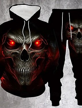 Per uomo Teschio 2 pezzi Set di felpe 3D Tuta Felpa con Cappuccio Manica Lunga Pantaloni lunghi Con Cappuccio Casual Quotidiano Athleisure Stampa 3D Primavera Autunno Inverno azzurro cielo Ametista