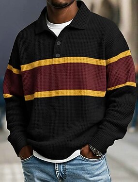 Per uomo Strisce orizzontali Magliette Polo a Nido d'Ape Polo da rugby Polo da Rugby Manica Lunga Magliette polo Bavero Abbigliamento Sportivo Casual Scuola Athleisure Abbigliamento quotidiano Stampa