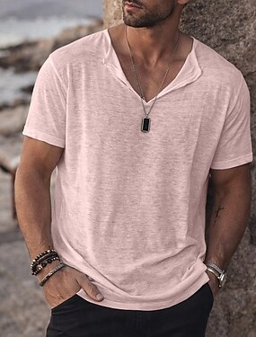 Per uomo Maglietta Maglietta in lino Manica Corta Maniche Corte Scollo a V Estate Semplice Moda Designer Essenziale Morbido Casuale Vacanza Streetwear Blu chiaro Nero Bianco Maglietta Top per Uomo