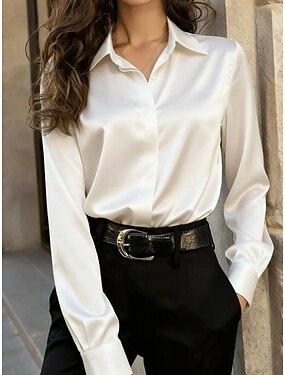 Per donna Camicia Elegant Top in raso Blusa Arricciato Bottoni Drappeggiato Floreale Grafico Semplice Elegante Bohemien Vintage Manica Lunga Colletto Polo Top Regolari Quotidiano Lavoro Ferie Bianco