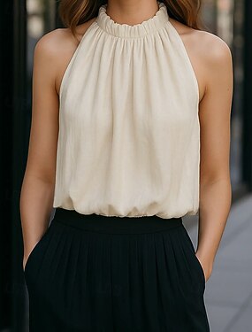 Per donna Maglietta Testurizzato Jacquard Tinta unica Elegante Moda Senza Maniche Collo Alto Top Regolari Casuale Uscire Abbigliamento da vacanza Bianco Estate Primavera