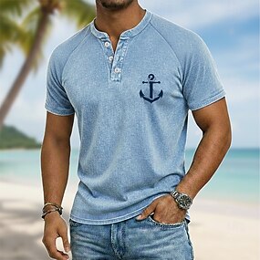 Per uomo Ancora Vintage Camicia di cotone Top Henley Camicia lavata con acido Manica Corta Vintage Designer Casual Casuale Quotidiano All'aperto Estate Primavera Tutte le stagioni Blu chiaro Viola