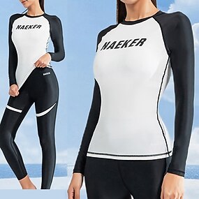 Per donna Rash Guard in 2 pezzi Pantaloni da bagno Maglietta da surf Con lettere Color-blocking UPF50+ Traspirante Manica Lunga Mute da immersione Surf Canoa Snorkeling Inverno