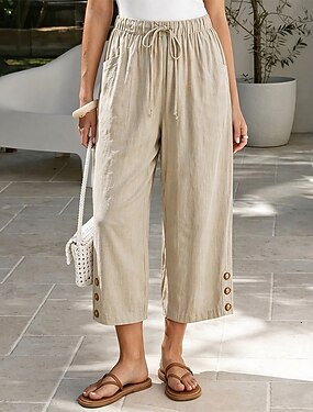 Per donna Pantaloni in cotone e lino Gamba larga Chinos Pantaloni Estivi Vacanza Streetwear Essenziale Lunghezza alla caviglia Vita media Semplice Tasca Comodo Comodità Inelastico Quotidiano