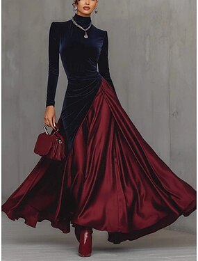 Linea ad A Lunghezza al pavimento Abito in Raso Abito da invitata a nozze Abito Formale Abito da cerimonia per signora Manica Lunga Colletto a Camicia Elegante Vintage Formale Ospite di nozze Chiesa