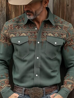 Per uomo Stampa Floreale Etnico Fiori Camicia Camicia Western Camicia da cowboy Manica Lunga Vintage Retrò All'aperto Casuale Abbigliamento da lavoro Primavera Autunno Collo ripiegato Due tasche