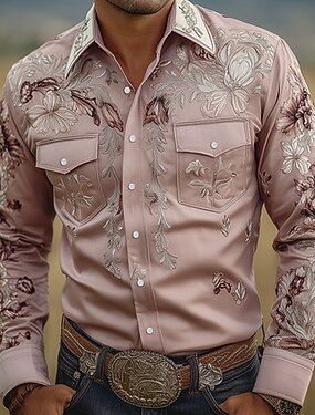 Per uomo Mimetico Camicia Western Camicia da cowboy Manica Lunga Western Sport all'Aperto Primavera Autunno Collo ripiegato Cardigan con Bottoni 2 tasche Nero Marrone Verde