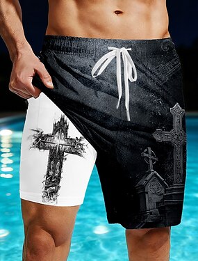 Per uomo Croce Cimitero Pantaloncini foderati Pantaloncini da bagno 2 in 1 Costumi da bagno Pantaloncini da bagno Misura del girovita medio Stile gotico oscuro Casuale Vacanza al Mare Tasche Laterali