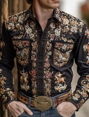 Per uomo Floreale intricato Fiori Camicia Camicia Western Camicia da cowboy Manica Lunga Vintage Retrò Casuale All'aperto Abbigliamento da lavoro Primavera Autunno Collo ripiegato Due tasche