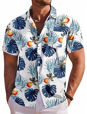 Per uomo Foglia di palma Maglietta informale Camicia hawaiana Camicia Aloha Manica corta Hawaiano Ricorrere Esterno Casual Informale Estate Primavera Collo ripiegabile Abbottonare Tasche Blu