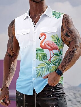 Per uomo Fenicottero Colore sfumato Foglia di palma Camicia Camicia hawaiana estiva Camicia Aloha Senza Maniche Resort Vacanza al Mare Estate Primavera Collo ripiegato Stampa 3D Due tasche anteriori