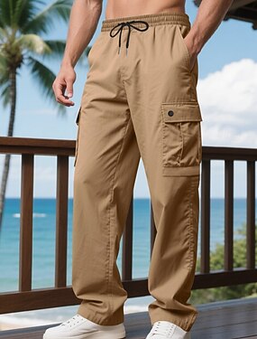Per uomo Jogging Pantaloni di lino Pantaloni Pantaloni estivi Pantaloni da spiaggia Tasche A cordoncino Vita elastica Liscio Comfort Traspirante Lunghezza intera Informale Giornaliero Per eventi Di