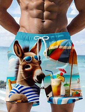Per uomo Cartoni animati Asino Divertente Costumi da bagno Pantaloncini da mare Pantaloncini da Surf Misura del girovita medio Hawaiano Vacanza al Mare Tasche Laterali fodera in rete Coulisse