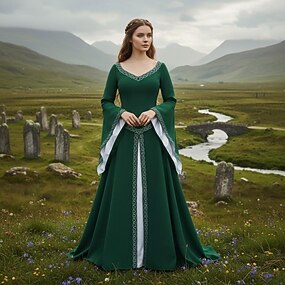 Retrò Vintage Medievale Rinascimento Lunghezza al pavimento Vestito Normale Manica del polsino svasato Vichingo Straniero Taglie Forti Elfico Costume Per donna Celtico Reale Halloween Carnevale