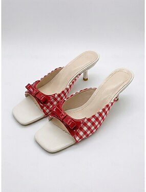 Sandali da donna con tacco a quadretti rossi e fiocco rosso in vernice – eleganti &scarpe comode per tutti i giorni e per le vacanze