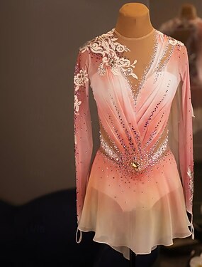 Vestito da pattinaggio artistico Per donna Da ragazza Pattinaggio sul ghiaccio Vestiti Rosso rosa Foro per pollice tintura sfumata Elevata elasticità Professionale Competizione Vestiti da pattinaggio