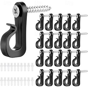 Set di 20 ganci di sicurezza in plastica per luci - soluzione versatile per appendere per uso interno ed esterno, include 20 ganci, 20 viti, 20 tubi, ganci da parete per esterni per Halloween, feste