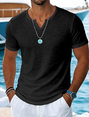 Per uomo Maglietta Camicia a Maniche Corte Maglietta in lino Manica Corta Scollo a V Estate Primavera Tinta unica Semplice Striscia di Fossa Streetwear Elegante Casual Puro Casuale Quotidiano