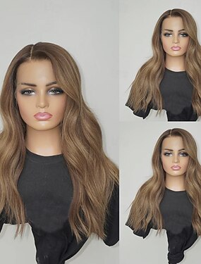 Parrucche brasiliane con capelli umani biondo cenere e mèches, chiusura in pizzo 5x5, parrucca frontale in pizzo 13x4, parrucca ondulata con parte libera e attaccatura naturale dei capelli.