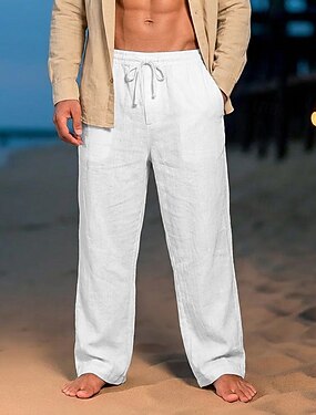 Per uomo Pantaloni di lino Pantaloni Pantaloni estivi Pantaloni da spiaggia Tasche A cordoncino Vita elastica Liscio Comfort Traspirante Esterno Giornaliero Moda Hip Hop Bianco Blu