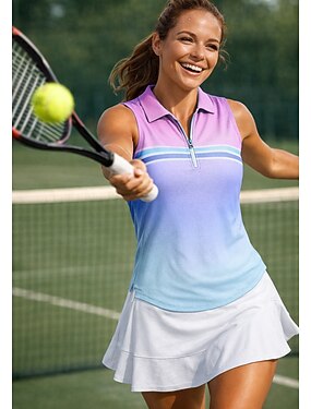 Per donna Geometrico A righe Maglietta sportiva Polo da golf Maglia da tennis Senza Maniche Cerniera Floreale UPF50+ Resistente ai Raggi UV Alta elasticità Traspirante Tennis Golf Pickleball Collo