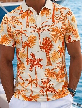 Per uomo Palma Polo Hawaiane Manica Corta Magliette polo Bavero Casual Athleisure Abbigliamento quotidiano Abbigliamento da vacanza Stampa 3D Bottoni Tessuto retato traspirante Primavera & Estate Blu