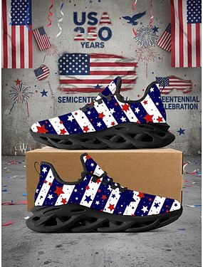Scarpe da ginnastica da uomo in maglia con bandiera USA – scarpe da corsa leggere e traspiranti con lacci e stelle patriottiche &Stile a righe per il giorno dell'indipendenza, parate, passeggiate