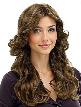 Parrucche Lunghe per Donne Parrucca Sintetica Ondulata con Frangia Parrucche Cosplay di Halloween