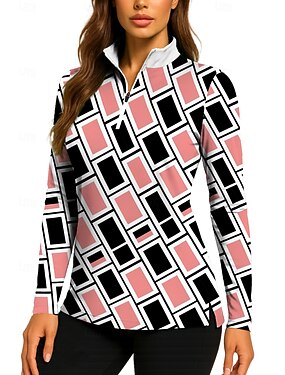 Per donna Geometrico Top Polo da golf Maglia da tennis Felpa da tennis Manica Lunga Stampato Zip a un quarto Pullover UPF50+ Protezione UV Elastico Traspirante Pallavolo Tennis Golf Collo alla