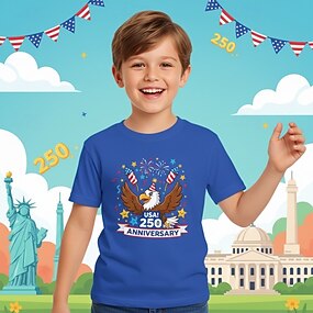 Giorno dell'Indipendenza americana Ragazzi 3D Grafico 250° anniversario Maglietta Manica Corta Stampa 3D Estate Primavera Sport Moda Streetwear Bambini 4-12 Anni Girocollo Casuale Quotidiano