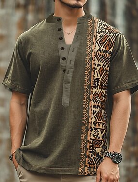Per uomo Tribale Etnico Maglietta Maglia Henley Manica Corta Designer Essenziale Etnico All'aperto Casuale Quotidiano Estate Verde Henley Maglietta Henley