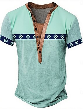 Per uomo Geometrico Tribale Etnico Maglietta Maglia Henley Manica Corta Designer Essenziale Etnico All'aperto Casuale Quotidiano Estate Primavera Verde chiaro Henley Maglietta Henley