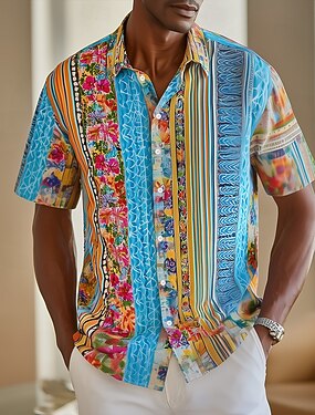 Per uomo Colorato Stampa Floreale Fiori tropicali Camicia Camicia hawaiana estiva Camicie tropicali Manica Corta Hawaiano Resort Vacanza al Mare Estate Primavera Collo ripiegato Stampa 3D Camicie con