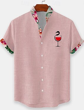 Per uomo Fenicottero Uccello Piante Tropicali Camicia hawaiana estiva Camicia con Bottoni Camicia Aloha Manica Corta Camicia Collo ripiegato Hawaiano Vacanza Ferie Abbigliamento mare Rosa chiaro Rosa