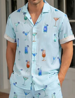 Per uomo Bere bevanda Camicia hawaiana estiva Camicie tropicali Camicia Aloha Manica Corta Hawaiano Vacanza Ferie Abbigliamento mare Estate Primavera Collo ripiegato Stampa 3D Camicie con bottoni Blu