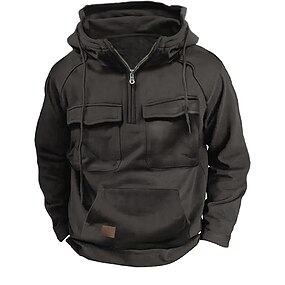 Per uomo Felpa con cappuccio Felpa con cappuccio e cerniera a un quarto Compatto Nero Verde militare Blu Grigio Con cappuccio Liscio Collage Tasche Sportivo Giornaliero Per eventi Streetwear