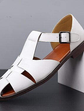Sandali da uomo in similpelle con cinturino a T, bianchi, comodi, ideali per la spiaggia, le vacanze estive e il tempo libero.