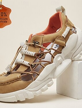 Scarpe da ginnastica casual da uomo con lacci, in similpelle bianca e beige, ideali per camminare, viaggiare e per tutti i giorni.