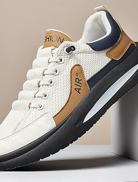 Sneakers da uomo in mesh leggero con dettagli in similpelle, design sportivo casual, comode per l'uso quotidiano, per camminare e viaggiare