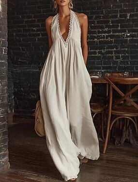 Per donna Tutina Elegante Senza Maniche Gamba larga Girocollo Quotidiano Spiaggia Vestibilità comoda Blu Nero Marrone chiaro Estate