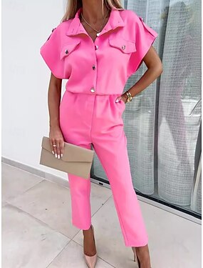 Per donna Normale Tuta Elegante Tinta unica Mezza Manica Harem Scollo a V Tasca Streetwear Quotidiano Vestibilità regolare Nero Giallo Rosa Estate