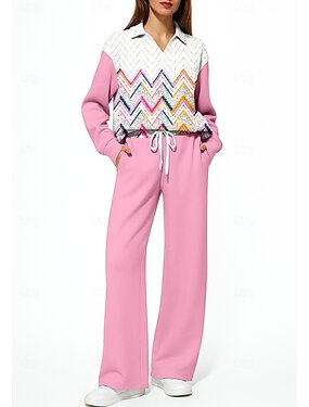 Per donna Maglia Tuta da Ginnastica Tuta da 2 pezzi Coulisse Con zip Geometria Completo Abbigliamento Autunno Inverno Viola Lavoro All'aperto Viaggio Leggero Di tendenza Manica Lunga Sport