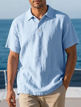 Per uomo Camicia di lino Polo Casuale Vacanza Classico Manica Corta Moda Tinta unica Semplice Bottoni Estate Primavera Vestibilità regolare Blu Nero Bianco Blu marino Verde Cachi Camicia di lino