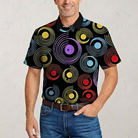 Per uomo Geometrico Linea Polo Manica Corta Magliette polo Camicie con Colletto Business Casual All'aperto Athleisure Abbigliamento quotidiano Tasca Stampa 3D Bottoni Estate Blu Bianco e nero Nero
